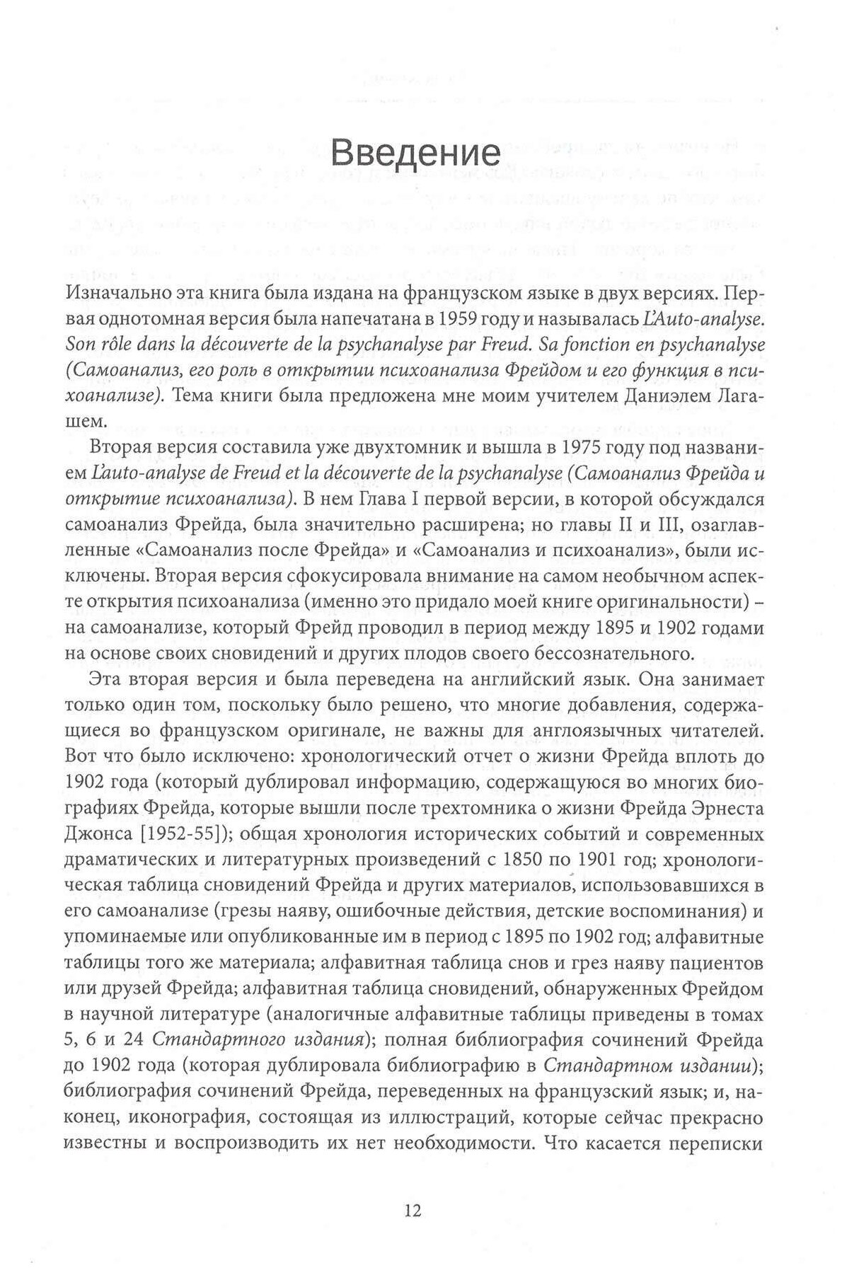 В своем колоссальном труде Дидье Анзьё ставит перед собой одну, но весьма сложную задачу: он пытается показать, как Зигмунд Фрейд проводил свой самоанализ, ставший для него делом всей жизни. Дидье Анзье считает самоанализ Фрейда ключевым моментом для возникновения психоанализа. В книге рассматриваются работы Фрейда, реальные европейские события рубежа XIX-XX веков, история культуры, письма к Флиссу, отношения Фрейда с семьей и коллегами по профессии, болезни, парапраксисы, остатки дневных впечатлений и ассоциации. Все это рассматривается через призму «Толкования сновидений». Дидье Анзье рассматривает разработку Фрейдом психоаналитической теории как защиту от депрессивной тревоги и подчеркивает, что Фрейд чувствовал потребность «защититься с помощью интеллектуализации».