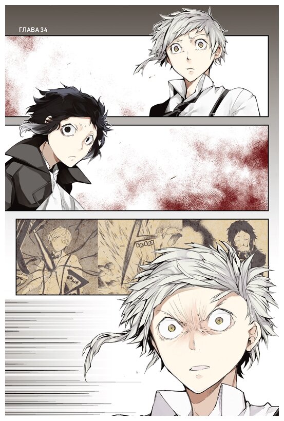 Ну что за прекрасная обложка, не могу не нарадоваться . Мой любимый Акутагава Реноске на главной странице, невозможно было не купить данную книгу. Обратилась к чтению данной Манги после просмотра аниме «Бродячие псы». Сюжет идентичен, но все таки немного отличается. Определено меньше комедии и больше диалогов. Если вам , как и мне, полюбились , персонажи аниме, то советую к прочтению!!