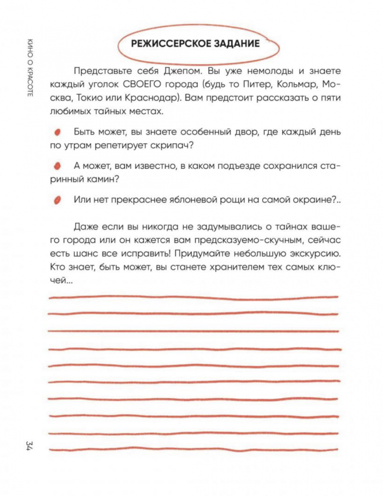 Я пока прочитала и проработала всего 86 страниц, но уже нисколько не жалею о покупке этой книги и готова рекомендовать ее своим друзьям и знакомым. Изначально брала кинорешебник из-за своего интереса к фильмам. После просмотра и проработки четырех кинолент убедилась, что можно получше узнать и себя. Впереди еще восемь кинопроизведений.