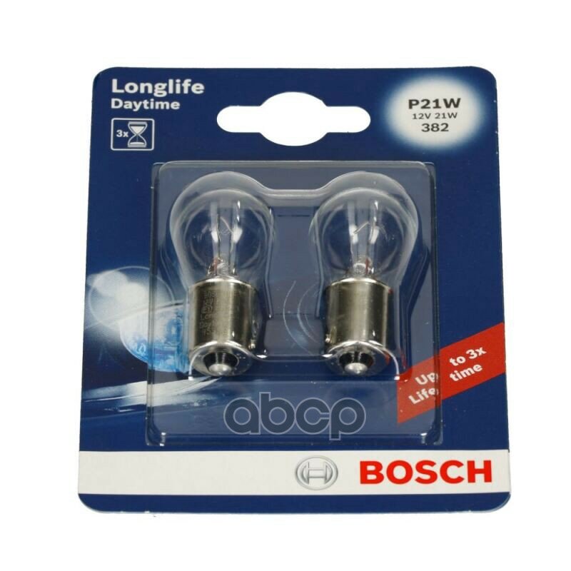 Лампа автомобильная галогенная Bosch P21W 12В 2шт 1987301050
