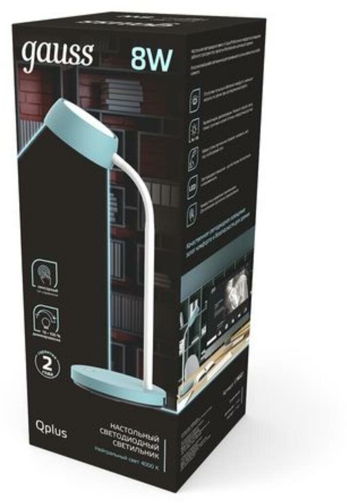 Офисная настольная лампа светодиодная с выключателем и регулировкой яркости Qplus - продукт известной компании Gauss (Россия). Имеет максимальную мощность 8 Вт, освещает площадь до 1.6 кв. м. Отлично подойдет для таких мест, как кабинет, офис. Впишется в интерьеры следующих стилей: современный.