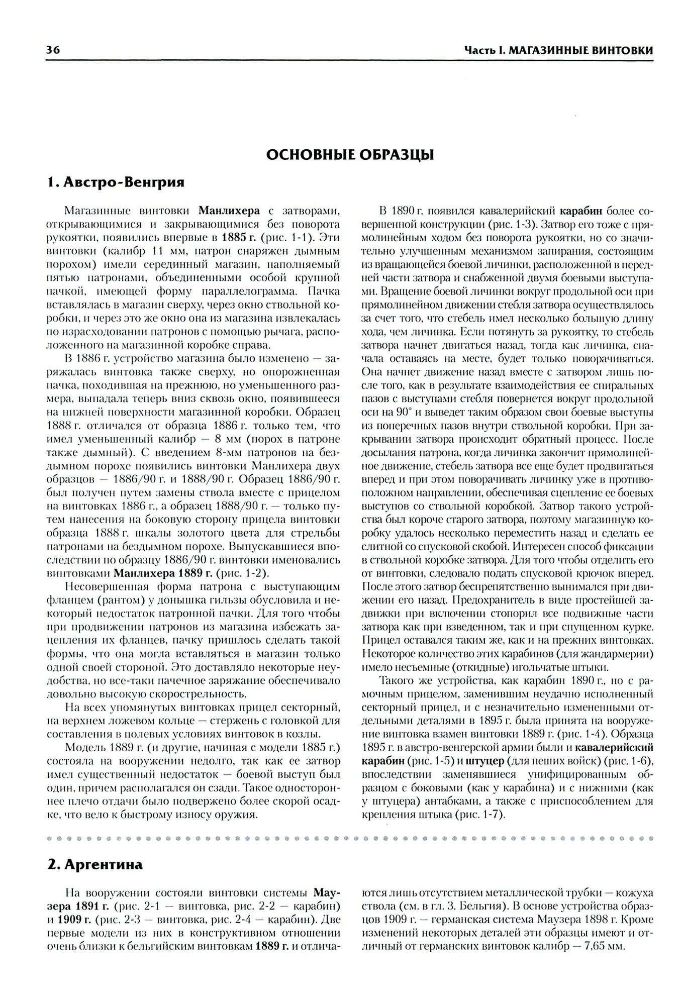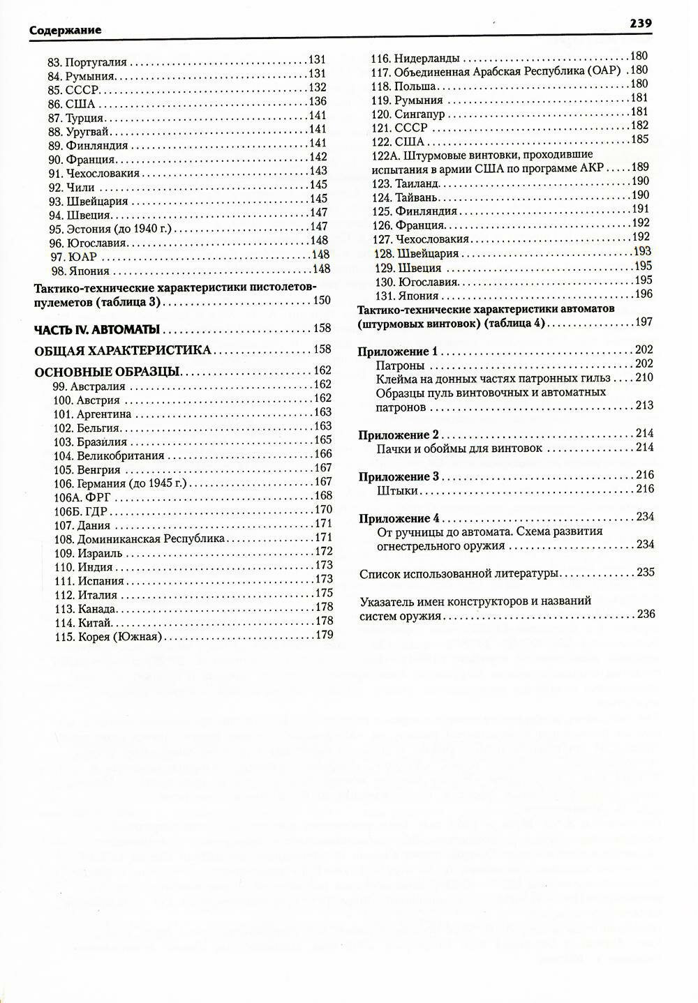 Основной материал книги составляет описание образцов оружия, выпущенных в разных странах за период от начала применения бездымных порохов до конца XX века. Предшествующий период развития стрелкового оружия кратко рассмотрен в историческом вступлении. Кроме того, книга содержит приложения, в которых даются сведения о штыках и боеприпасах.