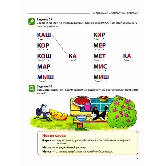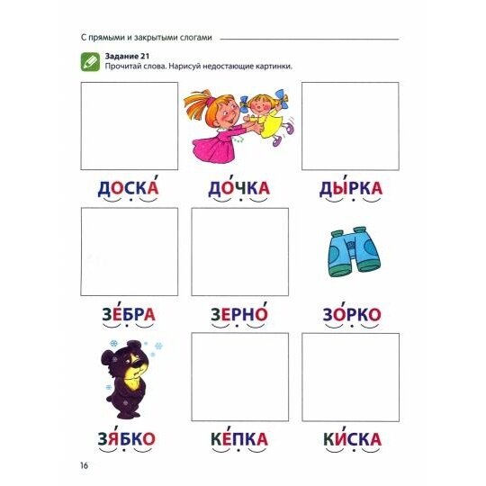Вторая тетрадь серии содержит игровые задания по чтению слов разной слоговой структуры, обогащению словарного запаса, улучшению техники чтения, развитию воображения. Рекомендуется для обучающих занятий с детьми и самостоятельного изучения, когда ребёнок проявит интерес к процессу. Может быть использована в начальной школе для коррекции навыка чтения. Пособие предназначено родителям, воспитателям, учителям начальной школы, логопедам.