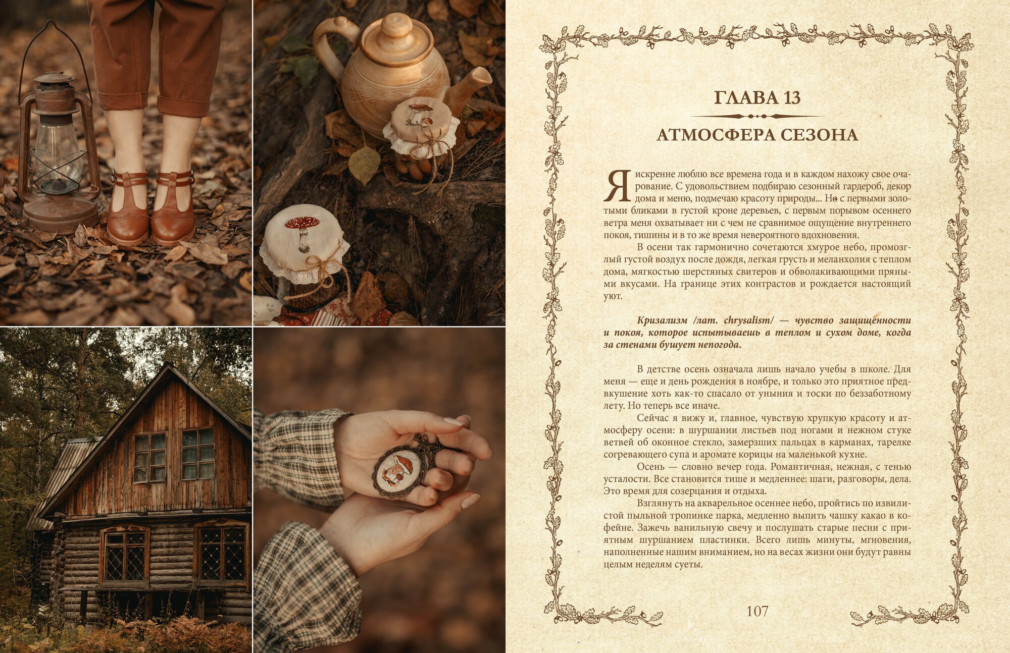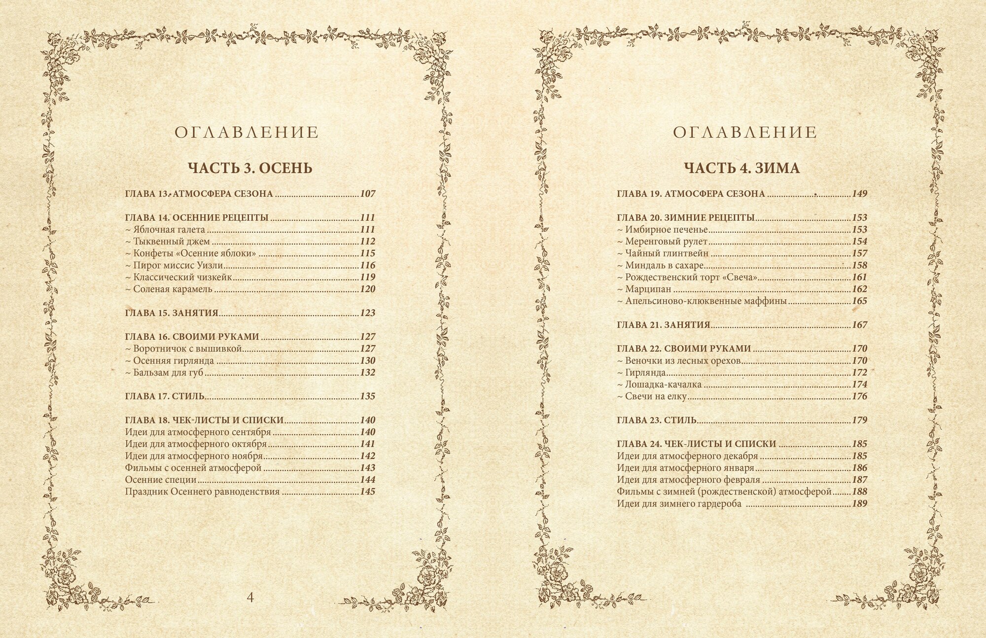 Восхитительная книга!!! Как хорошо, что она теперь есть у меня. Интересный, не избитый текст, погружающий в атмосферу каждого сезона года. Рецепты выпечки, которые сразу хочется приготовить. Разнообразные рукоделия, прекрасные, изысканные фотографии. Множество интересных придумок, соответствующих каждому сезону. Книга оформлена с большим вкусом и действительно вдохновляет на творчество, поднимает настроение. Хорошая плотная бумага, словно старинные листочки. Качественный переплёт и обложка. Огромная благодарность автору и издателям! Самая высокая оценка.