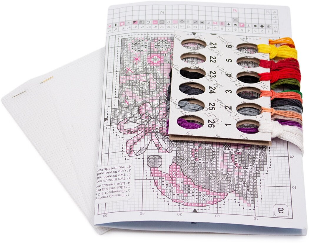 | Комплектация | канва пластиковая Aida 14 ct белая; хлопковое мулине; игла; схема; инструкция |