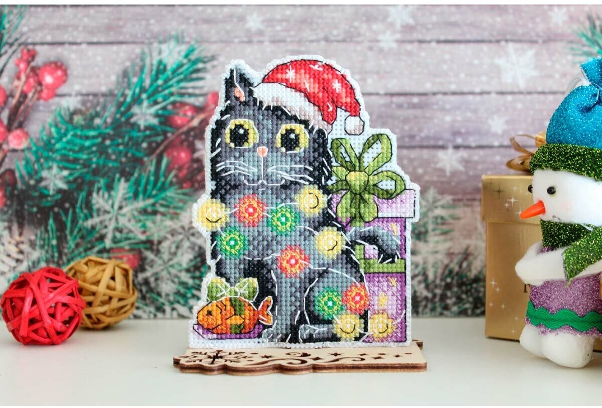 Р-709 Ёлочная игрушка. Кот с гирляндой. (МП Студия) (размер: 12х9 см)