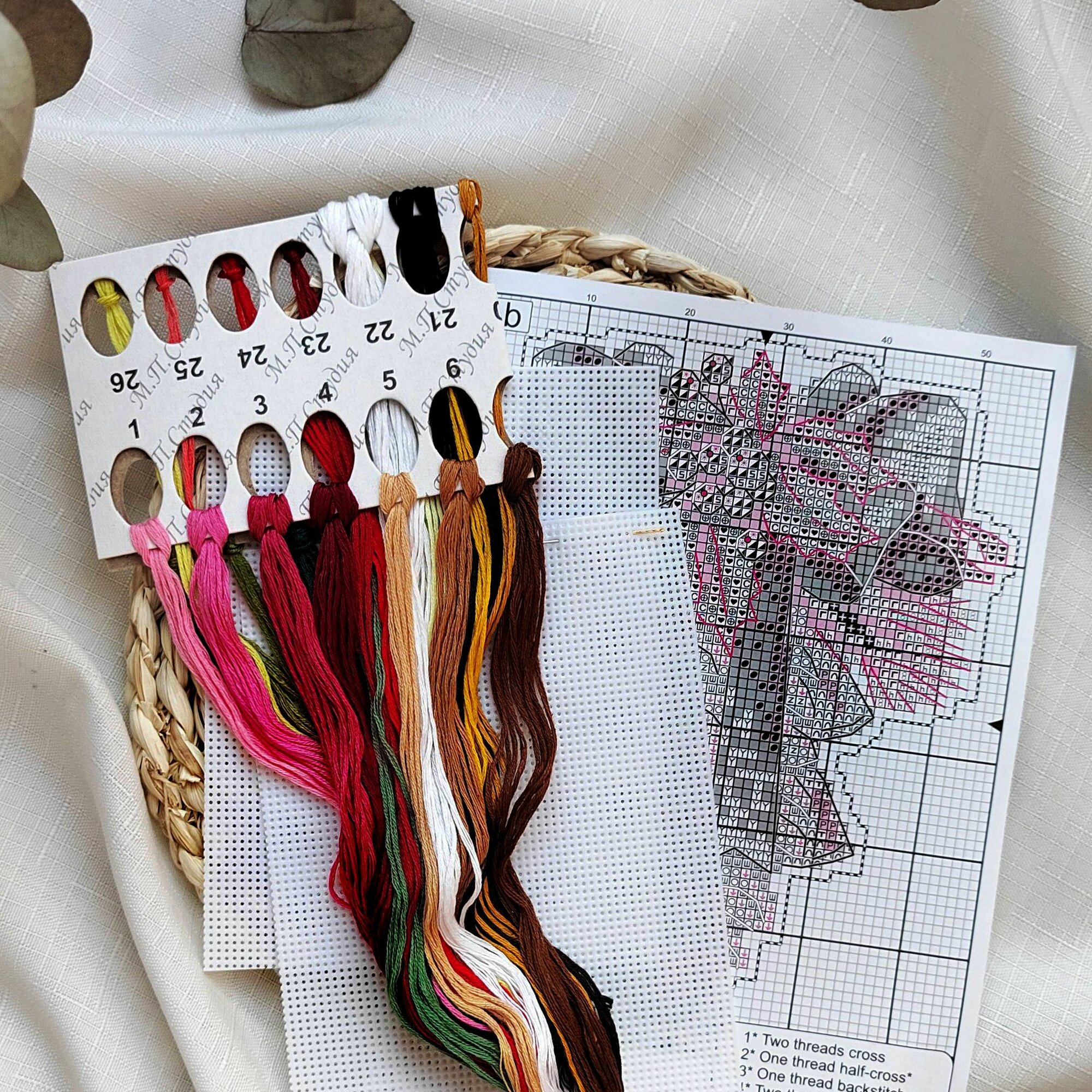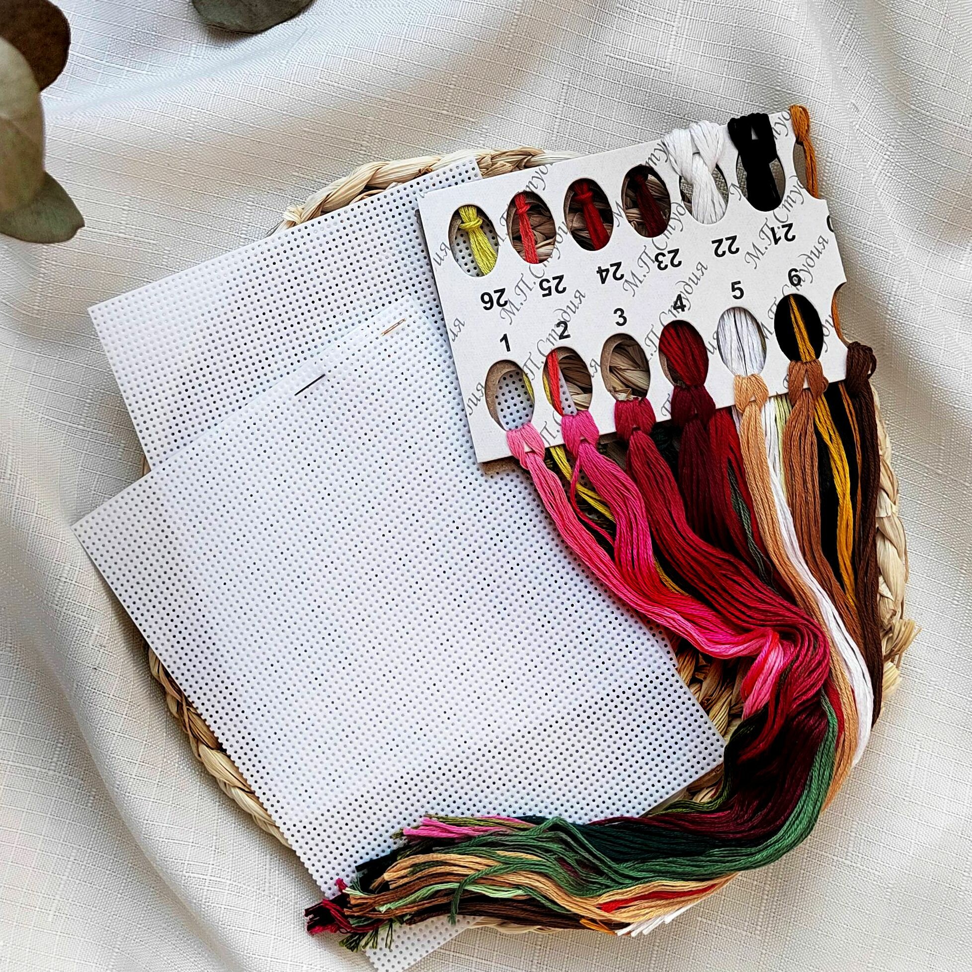 | В набор входит | канва пластиковая Аида №14, нитки мулине 22 цветов, разобранные на органайзере, игла, схема и руководство по вышиванию. |