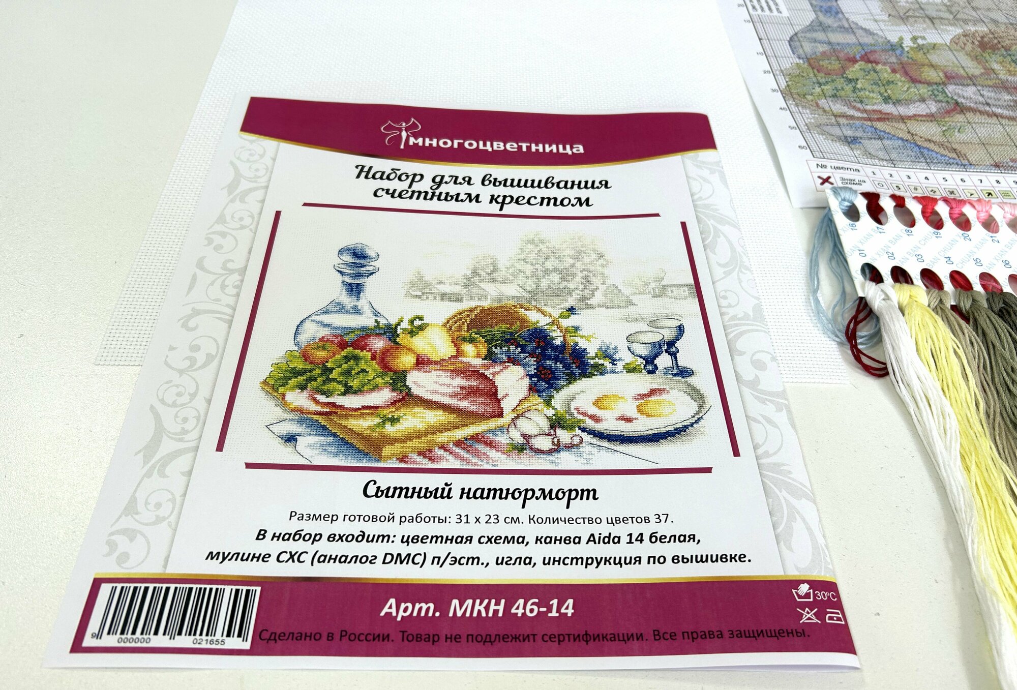 | В набор входит | канва белая Аида 14, цветная схема, мулине СХС (аналог DMC) п/э, игла, инструкция по вышивке |