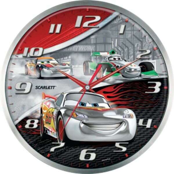 Яркие настенные часы Scarlett "Тачки" с надежным кварцевым механизмом - это не только функциональное устройство, но и оригинальный элемент декора, который великолепно впишется в интерьер детской комнаты.