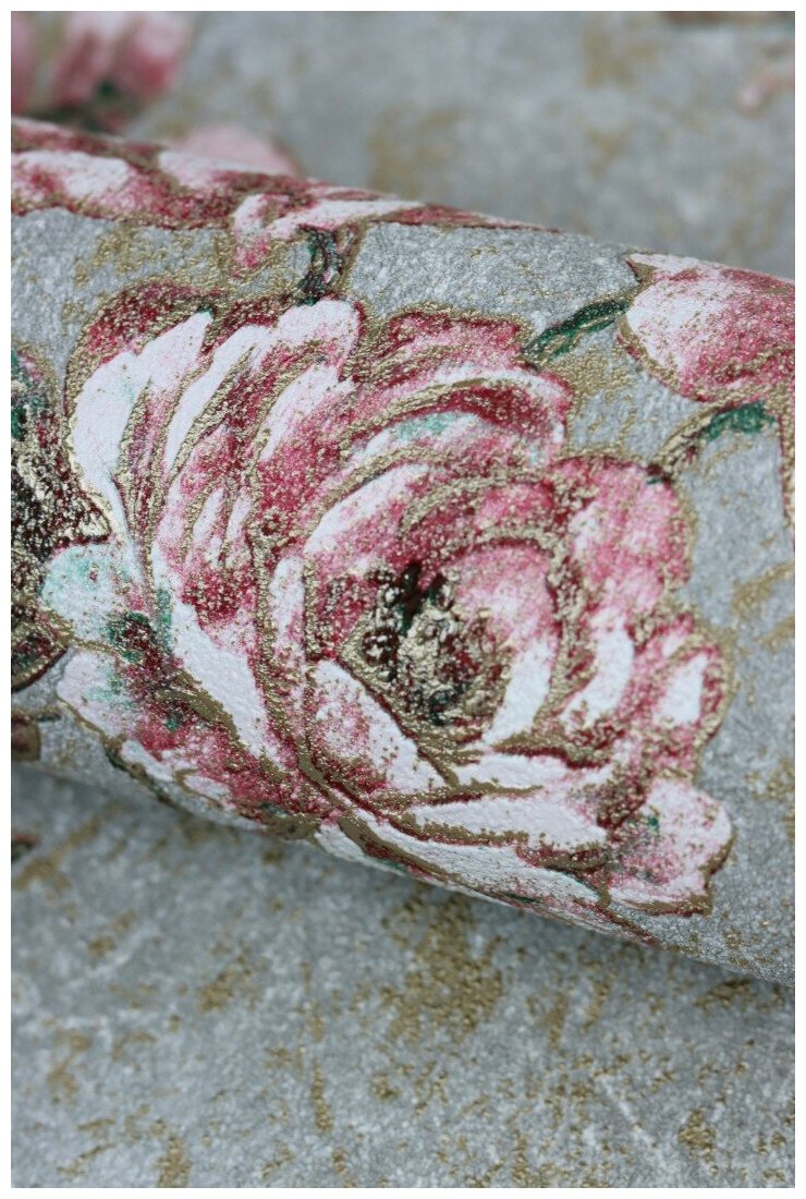 Модель: Factory Style 947526 Винил на флизелине (1,06*10,05) Серый/Золото/Розовый, Цветы