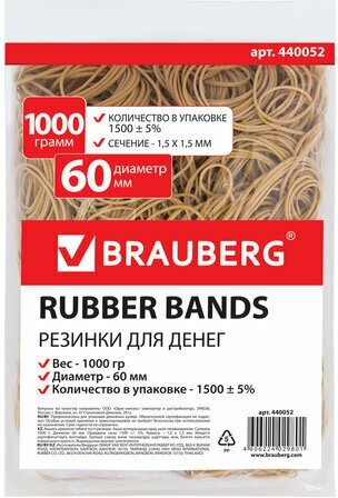 Банковские резинки BRAUBERG предназначены для упаковки денежных купюр, а также используются в производстве и других сферах деятельности. В упаковке — 1160 шт. ± 5%.