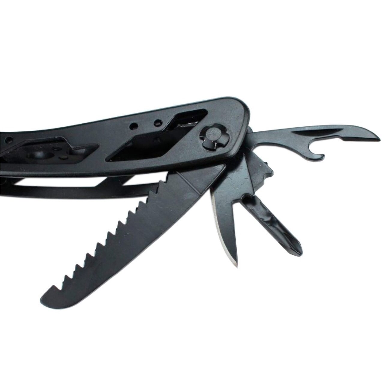 Все компоненты мультитула изготовлены из качественных материалов, а сам инструмент аккуратно собран. Металл покрыт стойкой порошковой краской черного цвета, что делает дизайн инструмента более оригинальным и дополнительно защищает его от ржавления.