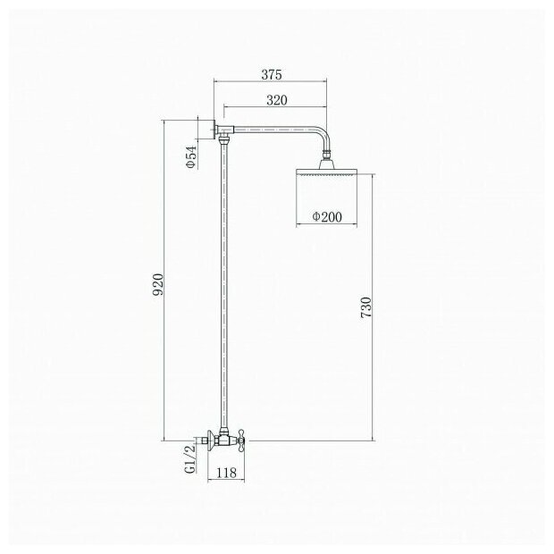 | Вылет верхнего душа, см | 37.5 |