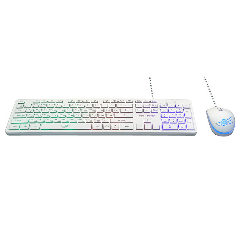 Dialog Проводной игровой набор WHITE Gan-Kata - клавиатура + опт. мышь с RGB подсветкой