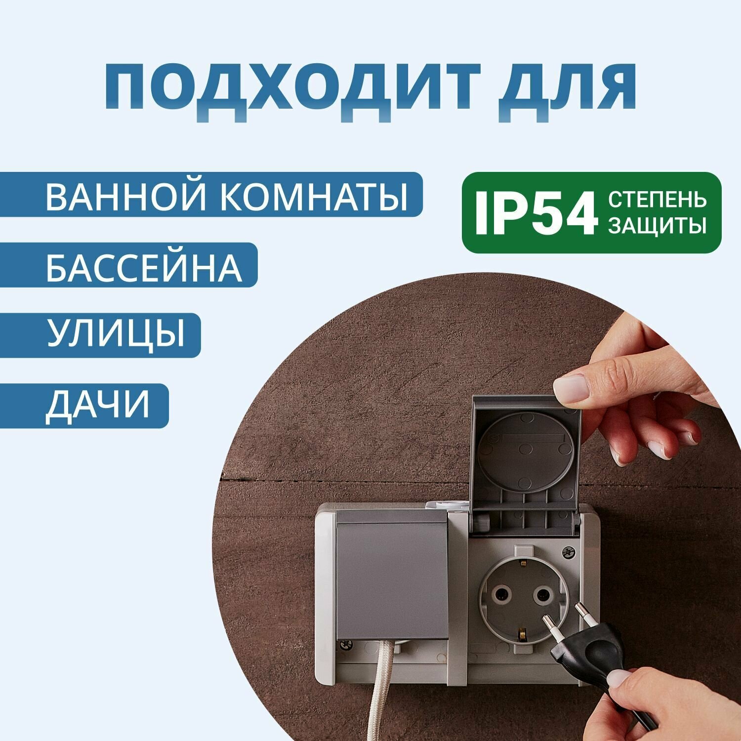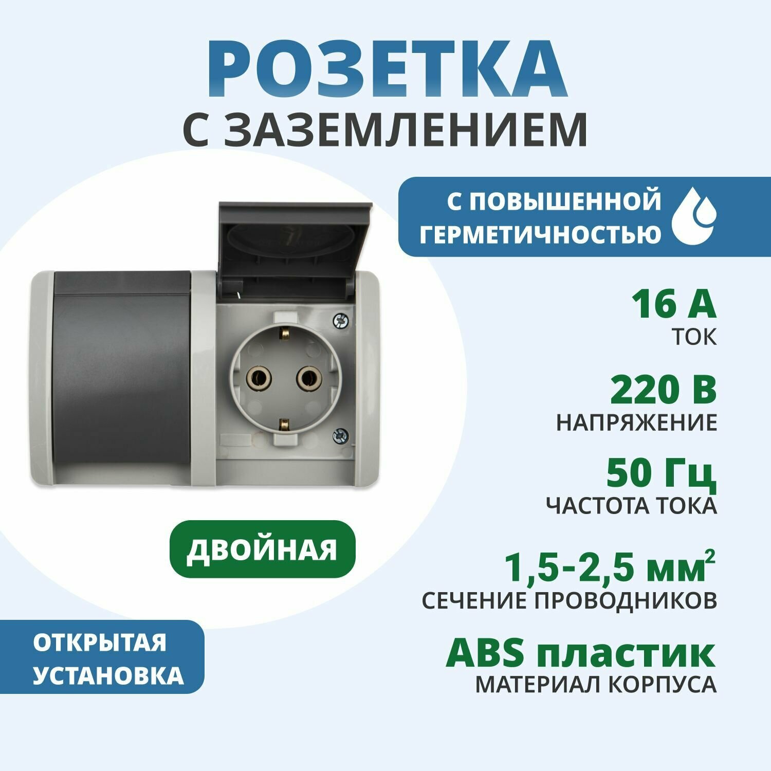 | Особенности | с влагозащитой, с крышкой |