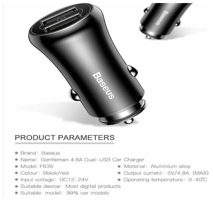 - Автомобильное зарядное устройство Baseus Grain 3.1A 2USB (CCALL-ML01) обзор