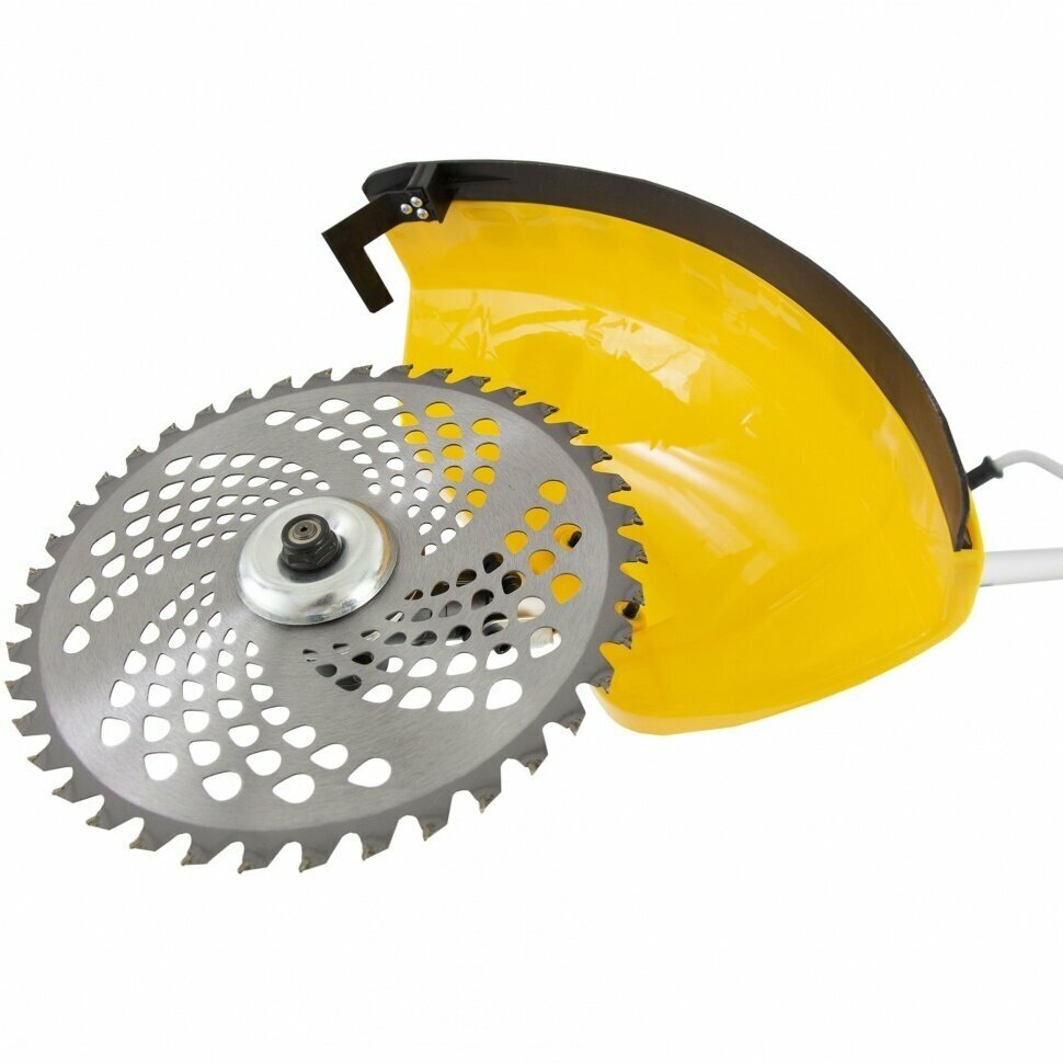 - Защитный кожух закрывает режущую часть, поэтому на оператора не отлетят ветки и камни.Замена оснастки производится в считанные секунды, что значительно упрощает и ускоряет рабочий процесс.