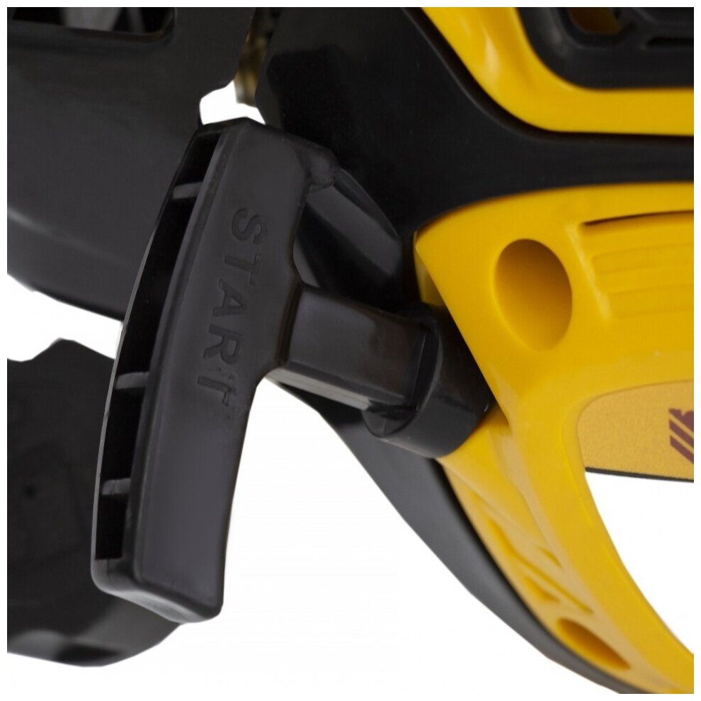 - Блокировка газа на рукоятке не допускает случайный запуск двигателя, что защищает оператора от травм.