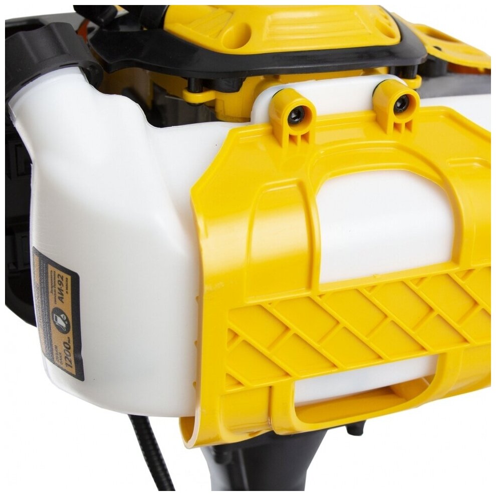 Мощный двигатель 3 л.с. потребляет топливо экономично, поэтому часто заправлять бак не придется. Благодаря беспроводной работе бензотриммер подойдет для применения в любом уголке участка, даже самом отдаленном.