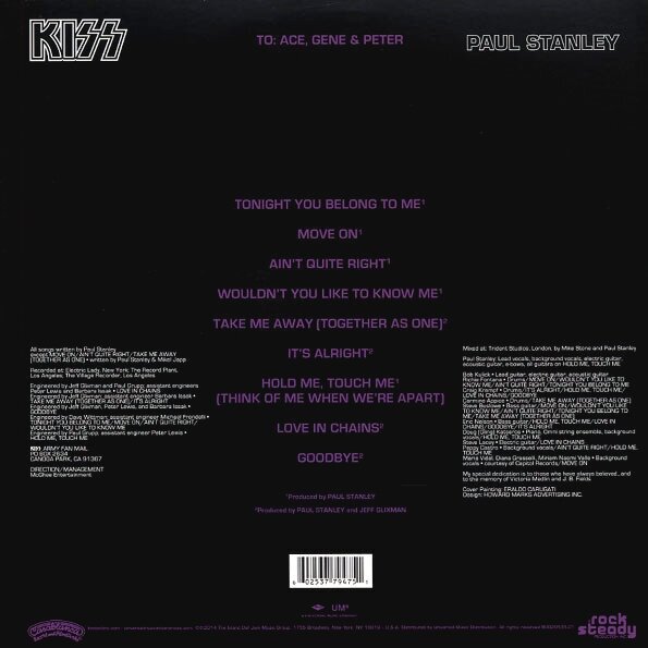 Сольная работа ритм-гитариста и вокалиста Kiss, Пола Стэнли, выпущенная в 1978 году. На пластинке содержатся исключительно песни Стэнли, в то время как остальные члены Kiss на своих сольных альбомах представили по одной кавер-версии других коллективов. Пластинка добралась до 40-го места в американском чарте Билборд. Пол Стэнли - американский музыкант, ритм-гитарист и вокалист рок-группы KISS. Вместе с Джином Симмонсом является одним из основателей группы, автор и соавтор большинства хитовых композиций Kiss, таких как " Rock and Roll All Night", " Detroit Rock City", " I Was Made For Lovin' You", " I Want You", " Love Gun", " Creatures Of The Night", " Crazy Crazy Nights", " Forever" и многих других.