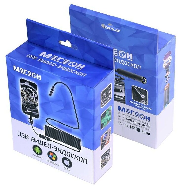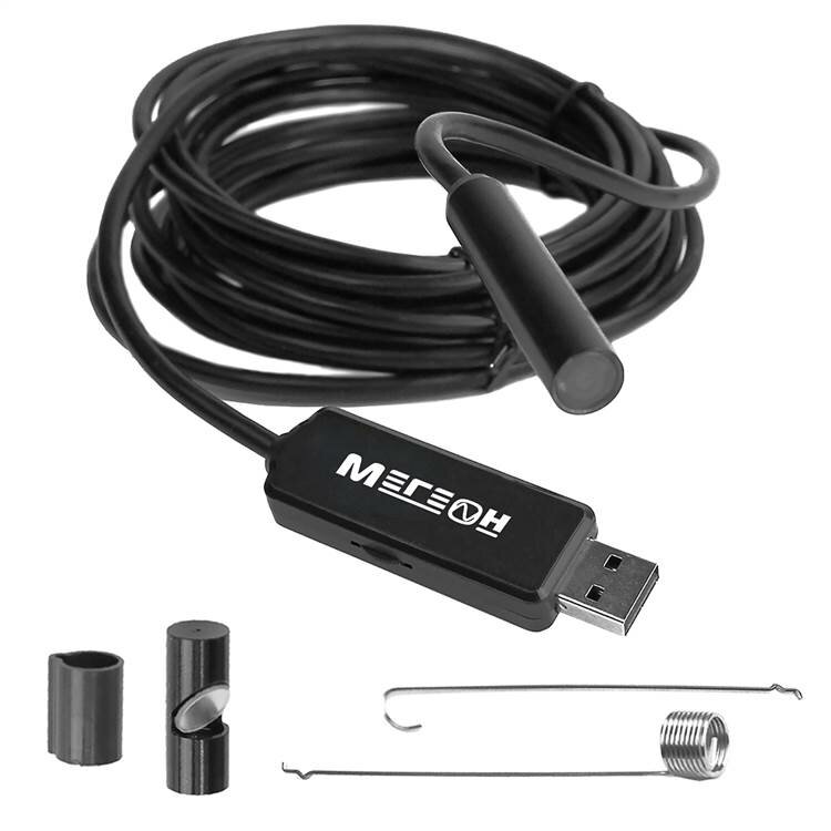 Этот простой и в тоже в время необходимый прибор поможет заглянуть в самые труднодоступные и скрытые места. Видеоскоп МЕГЕОН предназначен для визуального осмотра и проверки труднодоступных мест, скрытых полостей, внутренних частей оборудования, вентиляционных шахт и других объектов без повреждения их. В том числе полностью неосвещенных участков и имеющих малые входные отверстия (трубопроводы, системы вентиляции). Это достигается за счет полужёсткого зонда малого диаметра, который находится в влагозащитном корпусе. Длина зонда составляет 5 метров, толщина 4,1 мм, на конце зонда располагается видеокамера высокой четкости с регулируемой подсветкой пространства перед камерой. Изображение исследуемого объекта выводится на монитор компьютера, а также может быть сохранено в виде видеозаписи или фотографий. Используя OTG кабель, можно подключить эндоскоп мобильному устройству на платформе Android (приложение Camerafi2 доступно в PlayMarket). Примечание: Работа видеоскопа совместно с мобильными устройствами, не поддерживающими подключения внешних USB устройств невозможна, кроме этого USB порт должен поддерживать ток не менее 500мА.Преимущества Видеокамера высокого разрешения Влагонепроницаемый корпус Регулируемая светодиодная подсветка пространства перед камерой Длинна зона от 5 метров Диаметр камеры 7 мм USB/microUSB интерфейс Возможность записи видео и фото ПО входит в комплект Комплект вспомогательных насадок