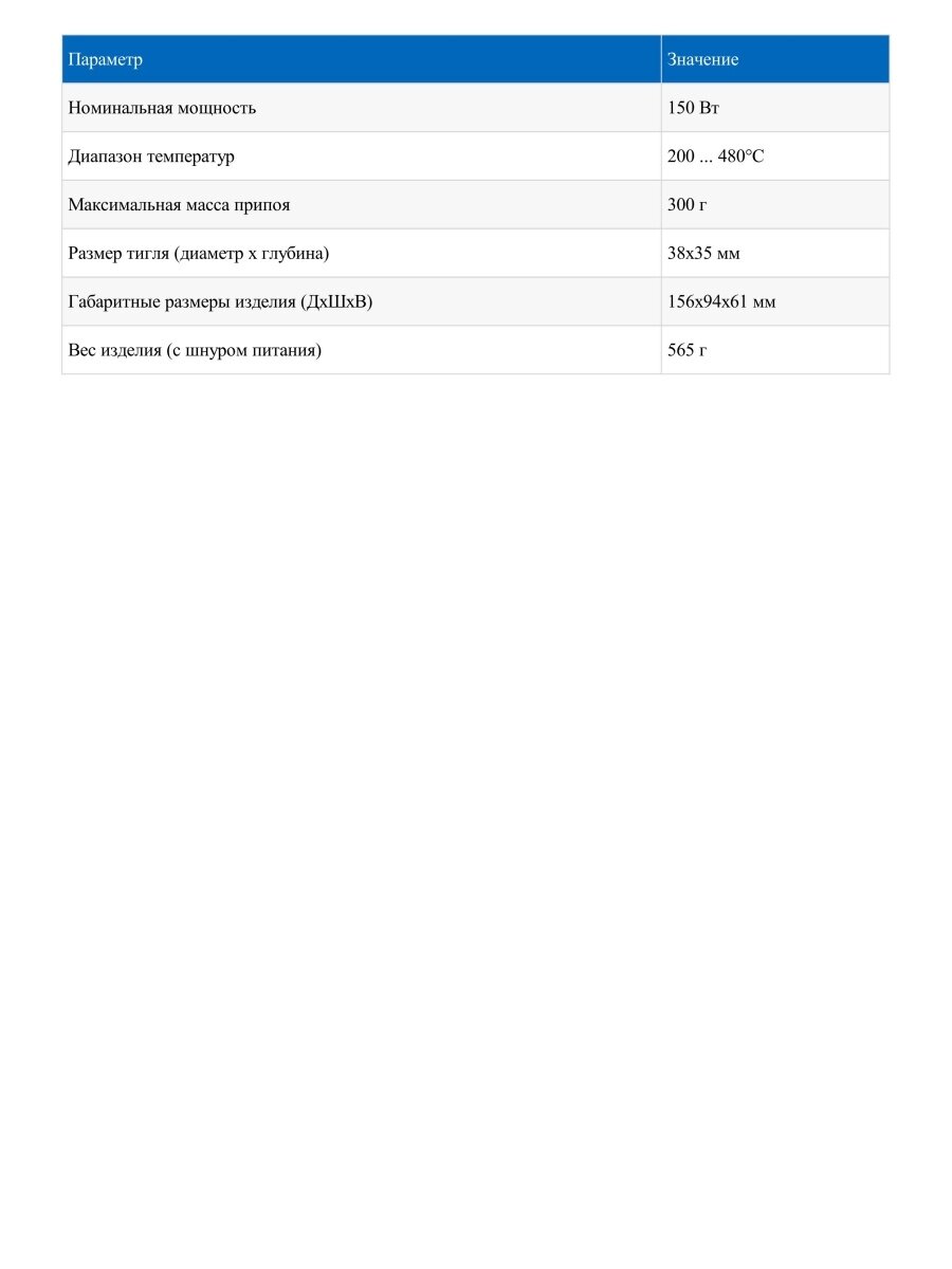 | Размер тигля | 38х35 |