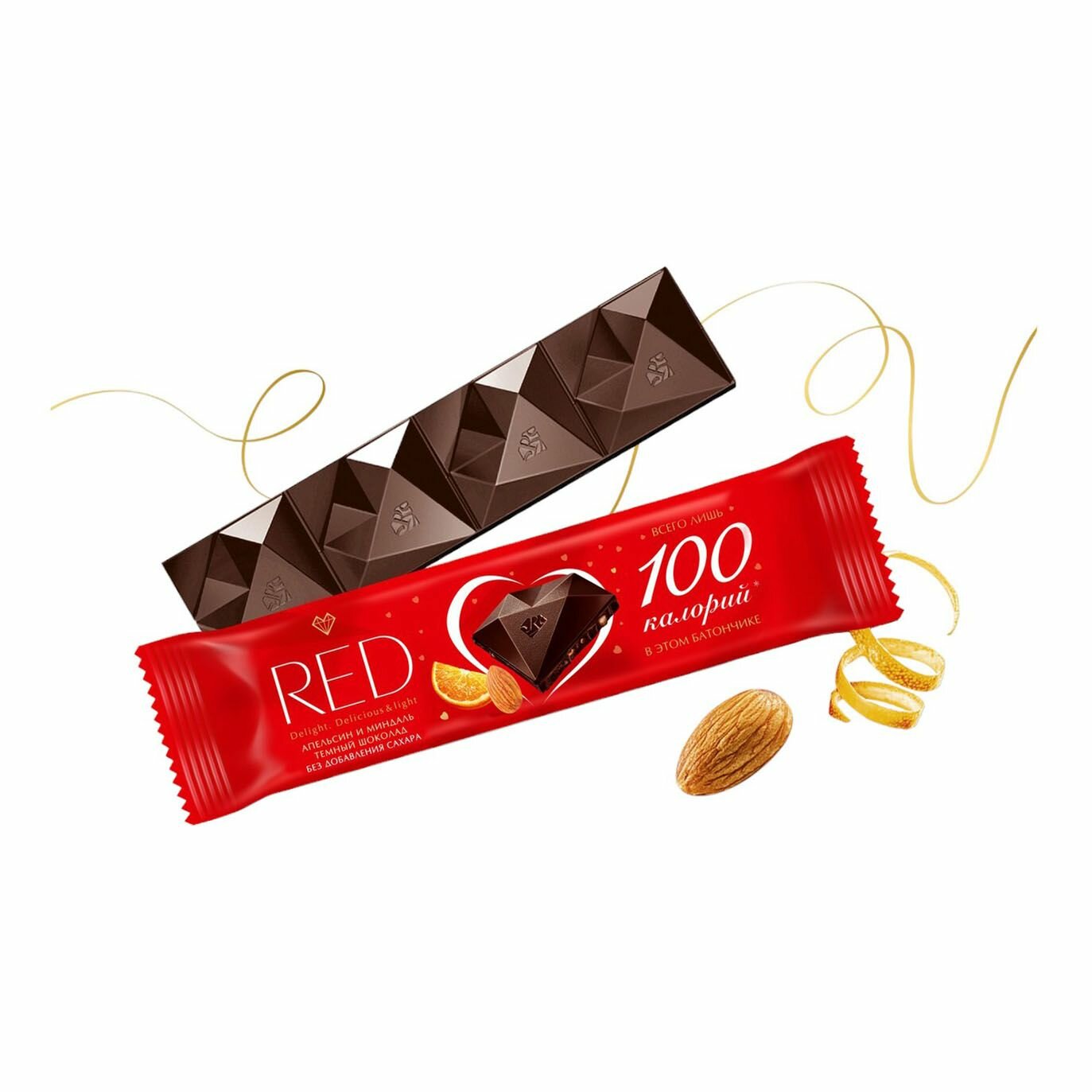 ПП продукты RED Delight - отличный выбор для ЗОЖ, правильного и диетического питания: БЕЗ САХАРА, меньше калорий и углеводов, без пальмового масла, без глютена, подходят для кето-диеты. Полезные и здоровые сладости! Изысканный темный шоколад с кусочками средиземноморского апельсина и калифорнийского миндаля. Яркий насыщенный вкус для ценителей темного шоколада. Теперь в удобном формате батончика - удобно взять с собой на перекус.
