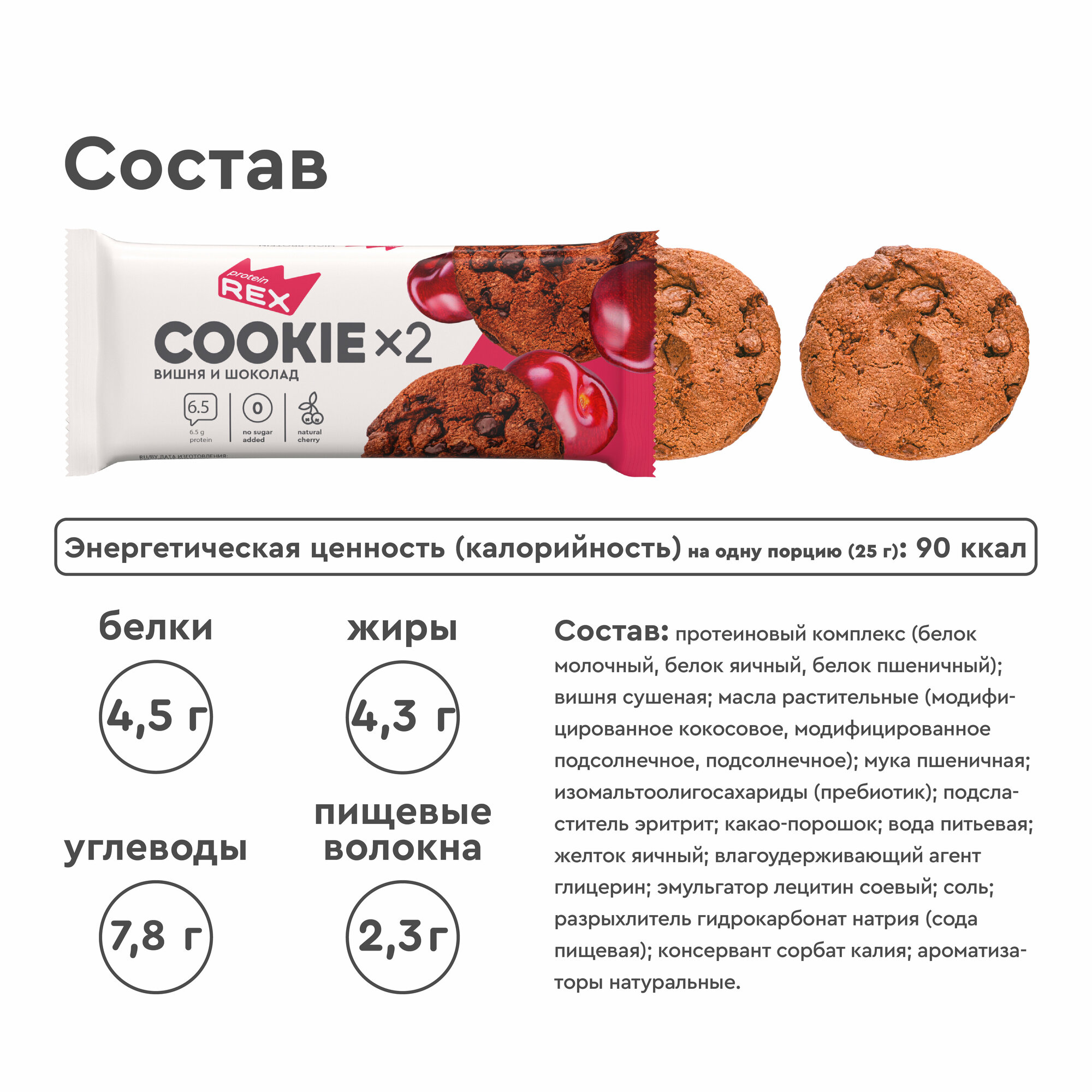 Протеиновое печенье без сахара и пшеничной муки со вкусом кокоса имеет низкое содержание углеводов и содержит большое количество протеина (25%) – подходит для тех, кто не хочет отказываться от сладкого, но бережет свое здоровье и следит за фигурой. Качественный белковый десерт без глютена и сахара в составе утоляют чувство голода и предотвращают переедание. Хрустящий бисквит с кокосовой стружкой имеет нежную структуру и яркий тропический вкус.12 индивидуальных упаковок по 2 протеиновых печенья 50 г хватит на несколько перекусов. Попробуй всю линейку бренда Протеин Рекс. ProteinRex- продукты без сахара с отличным вкусом и высоким качеством, подтвержденным положительными отзывами покупателей. Протеиновые батончики, протеиновое печенье, протеиновые хлебцы, низкокалорийные пирожные стали лидерами продаж в магазинах спортивного питания.