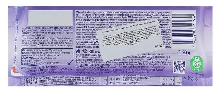 | Состав | Сахар, масло какао, какао тертое, молоко сухое цельное, молоко сухое обезжиренное, сыворотка сухая молочная, жир молочный, паста ореховая (фундук), эмульгаторы (лецитин соевый, Е476), ароматизатор |