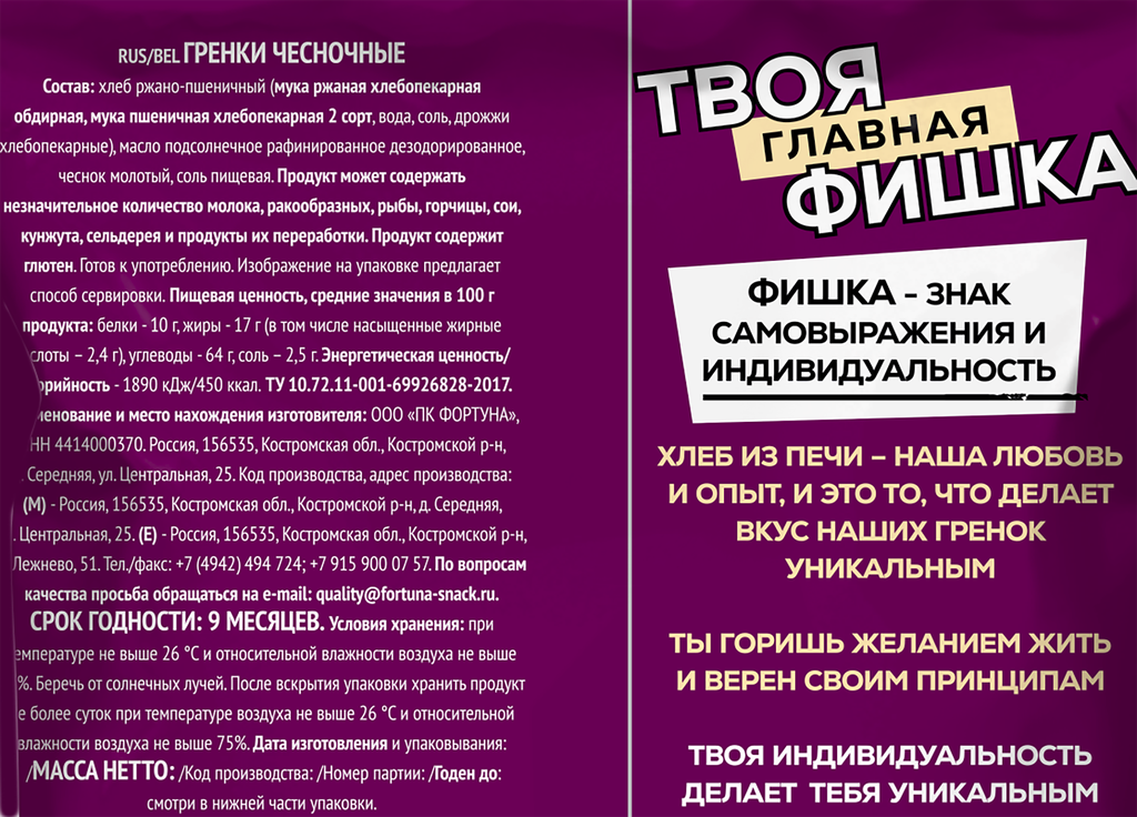 | Состав | хлеб ржано-пшеничный (мука ржаная хлебопекарная обдирная, мука пшеничная хлебопекарная 2 сорт, вода, соль, дрожжи хлебопекарные), масло подсолнечное рафинированное дезодорированное, чеснок молотый, соль пищевая |
