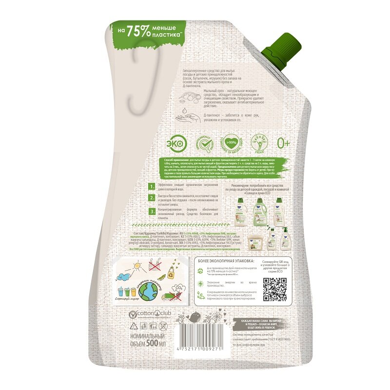 Средство для мытья посуды Солнце и Луна ECO детское 500мл