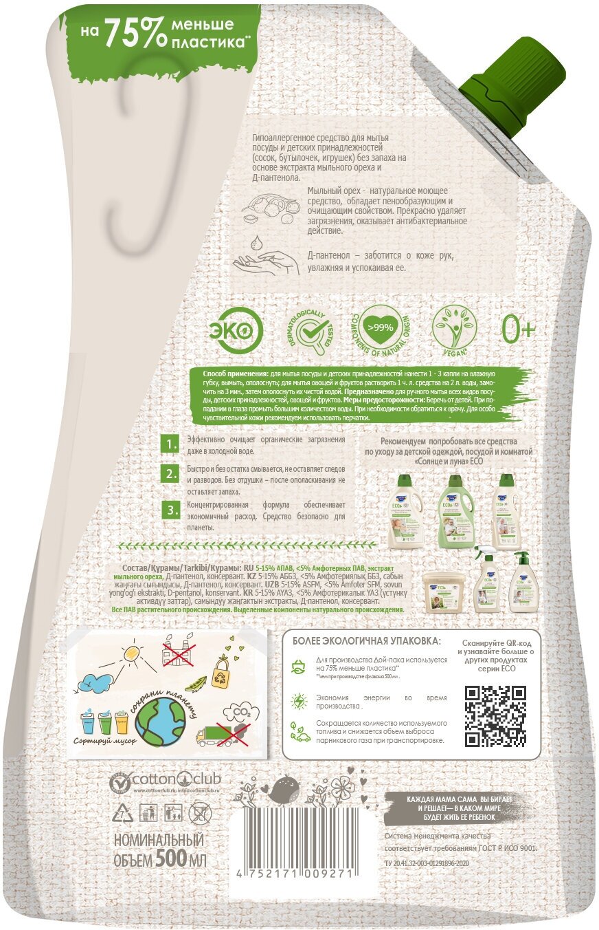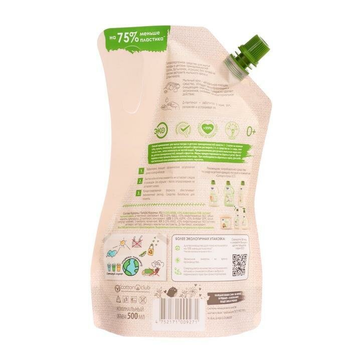 Гипоаллергенное средство для мытья посуды и детских принадлежностей (сосок, бутылочек, игрушек) без запаха на основе экстракта мыльного ореха и Д-пантенола.