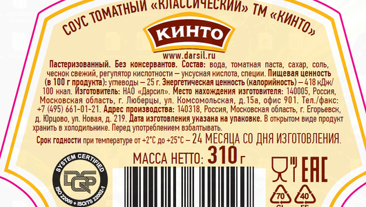Сервис сравнения цен СкидкаГИД предлагает сравнить цены на товар «Соус Кинто Томатный классический 310г»