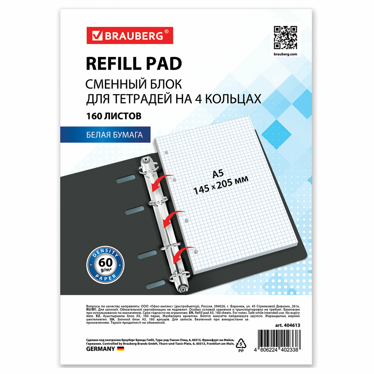 Сменный блок BRAUBERG предназначен для письма гелевыми, шариковыми, капиллярными и перьевыми ручками. Универсальная перфорация на 4 отверстия.