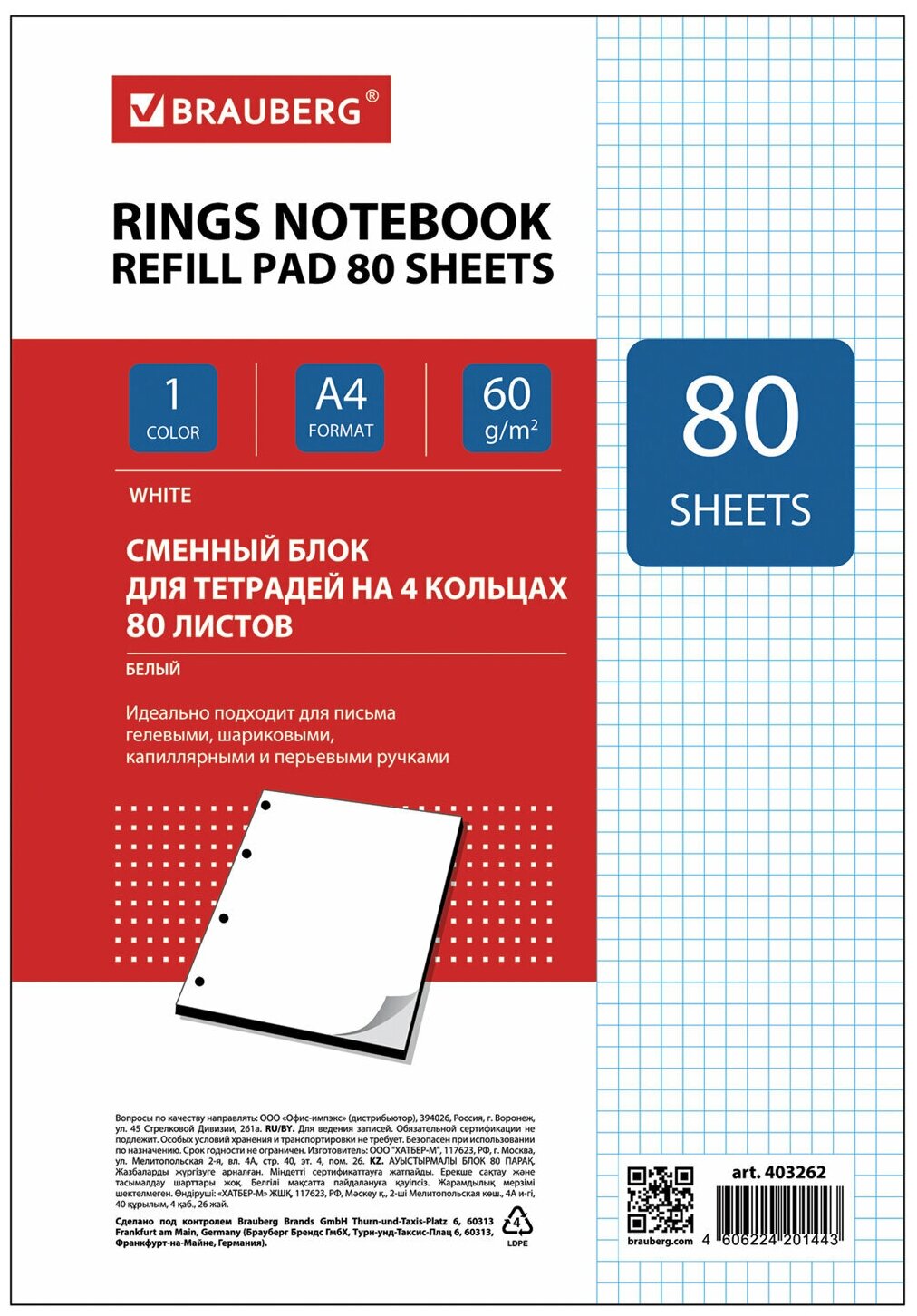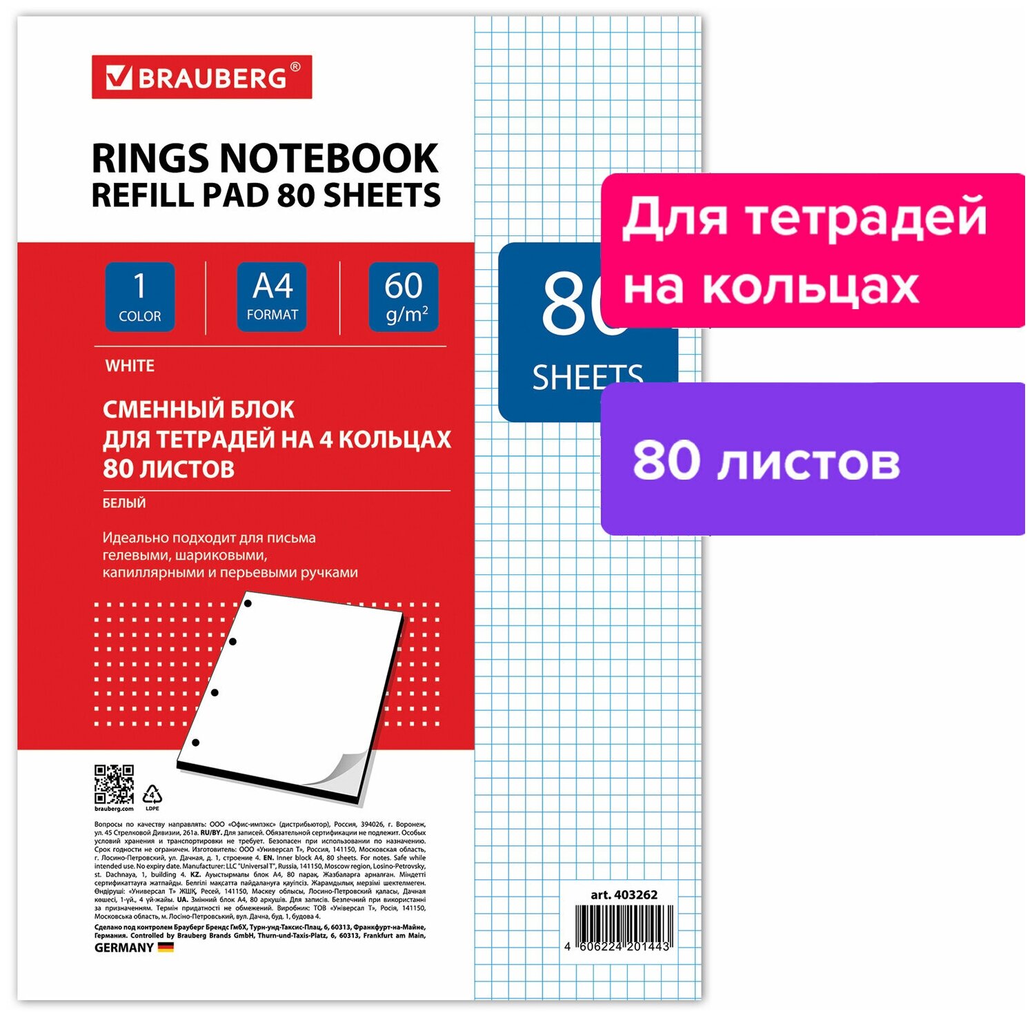 Сменный блок к тетради на кольцах Brauberg А4 80л