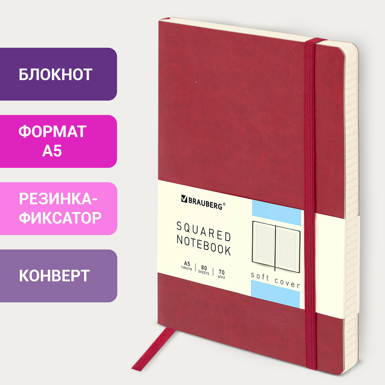 Блокнот Brauberg Metropolis Ultra с резинкой клетка А5 80л