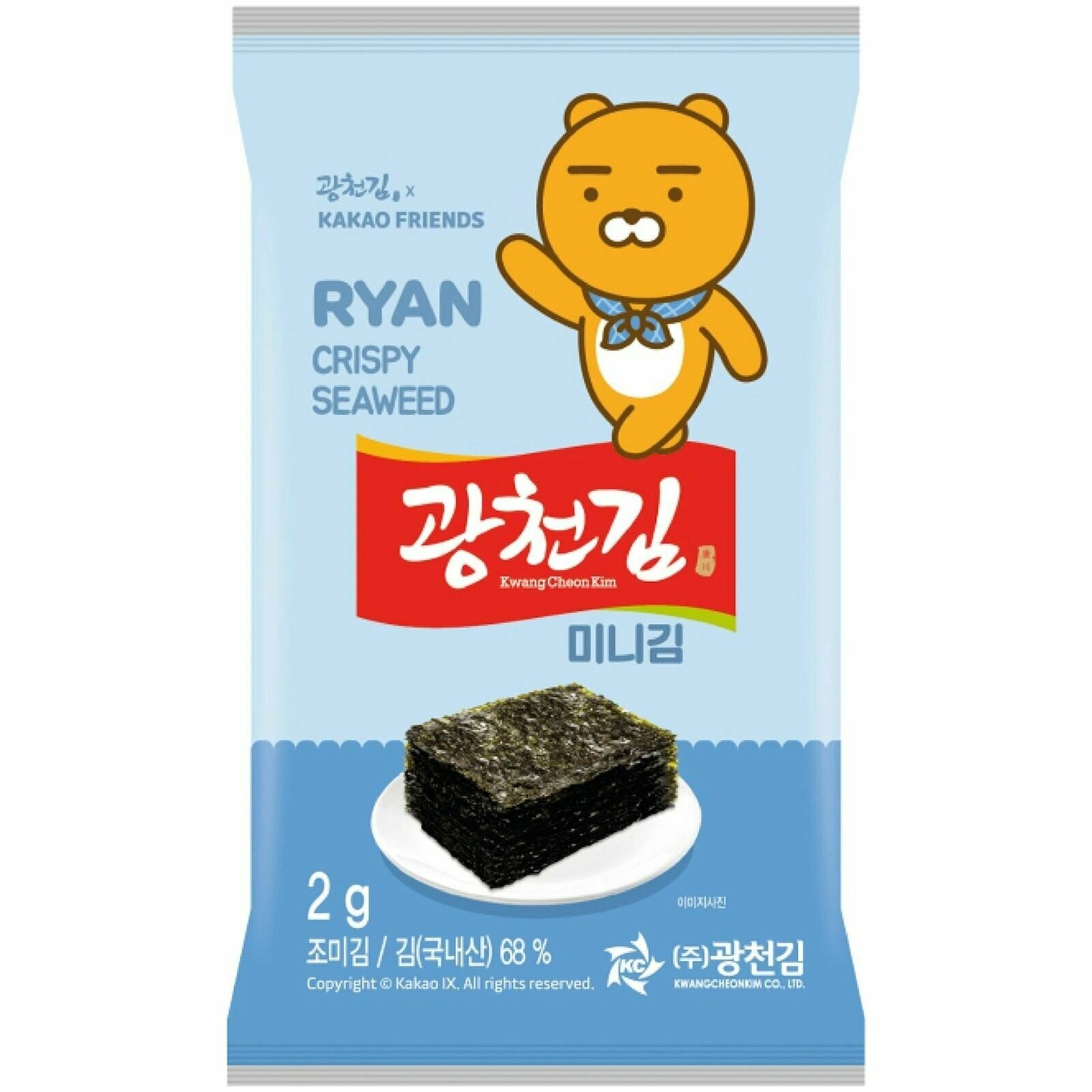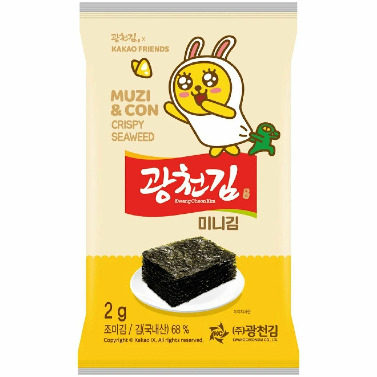 Чипсы из морской капусты Kakao Friends - это не только быстрый перекус в школе, на прогулке или по дороге на тренировку, но и экологически чистый натуральный продукт, выращенный в акватории Жёлтого моря. Вся польза витаминов, микроэлементов, аминокислот и омега-жиров в одной упаковке; отсутствие красителей, искусственных добавок и сахара.