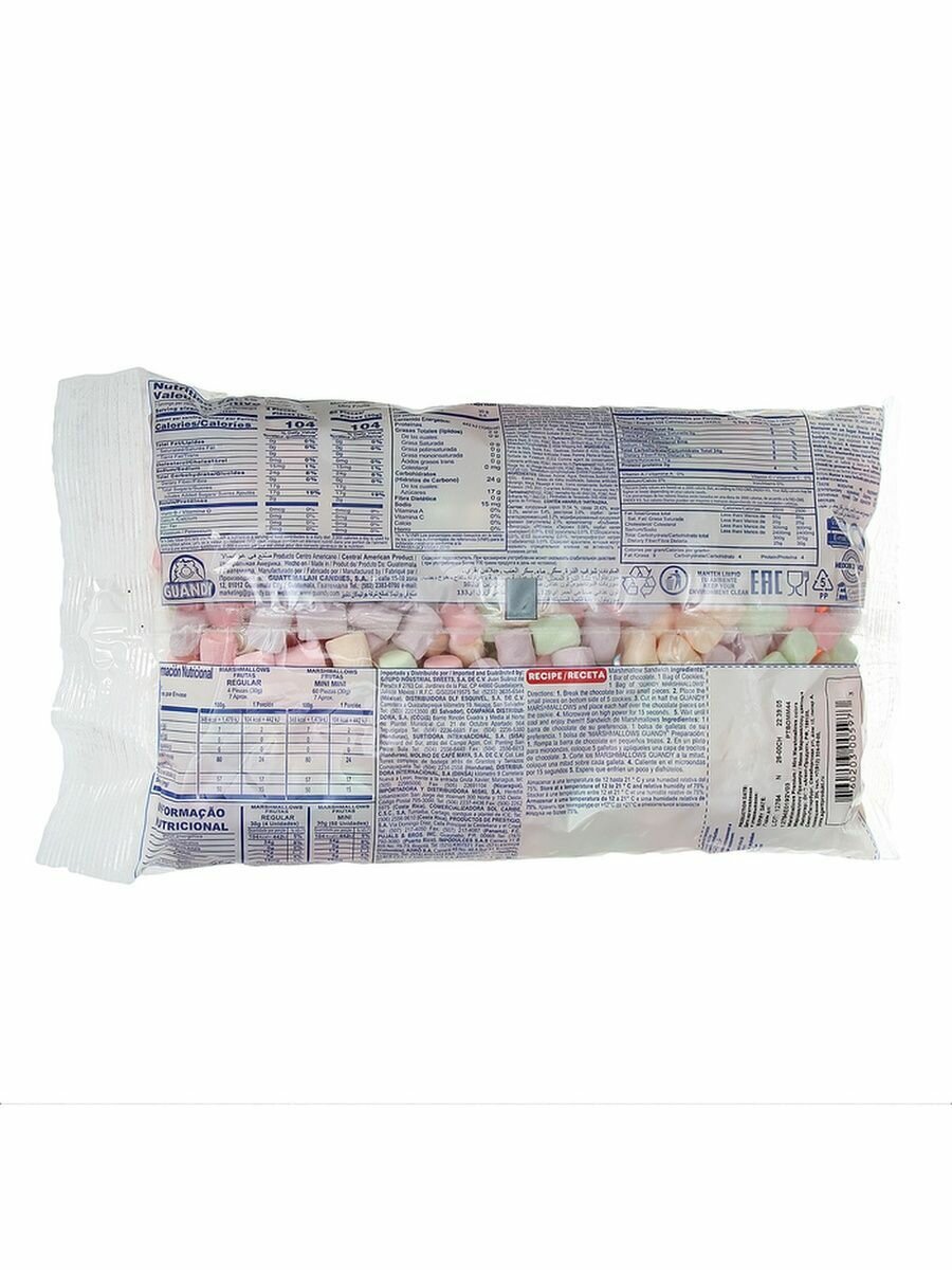Без жира. Без глютена. Без лактозы. Без яичного белка. Маршмеллоу GUANDY сложный и уникальный продукт, имеющий особую закрытую технологию производства, которая включает в себя рецептуру и опыт в данной отрасли на протяжении более 35 лет. Не каждый производитель маршмеллоу способен повторить особую температурную формулу, а ведь именно она позволяет нам использовать маршмеллоу множеством разных интересных и вкусных способов, а также придает ему идеальную упругость и нежный ванильный вкус. Кроме того, наш маршмеллоу не содержит жир, глютен, лактозу и яичный белок. Технология производства маршмеллоу GUANDY разработана специально для России, учитывает наши климатические особенности и соблюдает все требования к такому нежному продукту! Поэтому именно наш маршмеллоу идеально жарится на огне и плавится при тепловой обработке, максимально долго сохраняет свою мягкость и упругость даже после вскрытия упаковки, а также создает самую стойкую и нежную ванильную пенку при использовании в напитках. Среди европейских сладостей маршмеллоу GUANDY уже много лет занимает лидирующие позиции компания GUANDY ведущий производитель маршмеллоу в мире. Производство маршмеллоу GUANDY является гипоаллергенным. Это значит, что на нем не используются аллергенные продукты: орехи, яйца, пшеничная мука, ракообразные и многие другие следовательно, нет никакого риска случайного попадания аллергенов и их следов в маршмеллоу. Важно помнить, что маршмеллоу не зефир! Ни один зефир не подходит для жарки на костре. Никакой вид зефира не ведет себя при тепловой обработке так, как маршмеллоу при жарке он сверху покрывается румяной корочкой, а внутри становится кремовым с неповторимым нежным ванильным вкусом. Именно поэтому, если вы хотите приготовить маршмеллоу на костре или углях, запечь его в гриле или добавить в напитки, чтобы получить нежное ванильное облако вам подойдет только настоящий маршмеллоу, и никакой зефир не сможет его заменить! Разноцветный мягкий маршмеллоу, представленный в мини-кусочках. Цветной мини-маршмеллоу можно добавлять в горячий шоколад, какао, кофе, коктейли, чтобы создать ощущение праздника или просто разнообразить и сделать интереснее привычные напитки и блюда. Этот вид маршмеллоу также используется для приготовления мастики и кондитерских украшений или как топпинг.