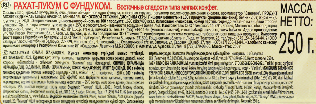 Сервис сравнения цен СкидкаГИД предлагает сравнить цены на товар «Рахат-лукум Тимоша с фундуком 250г»