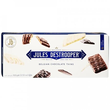 Печенье в шоколаде Jules Destrooper "Ассорти" - хрустящие и тонкие печенья, обильно покрытые тремя сортами настоящего бельгийского шоколада (темным, белым и молочным).