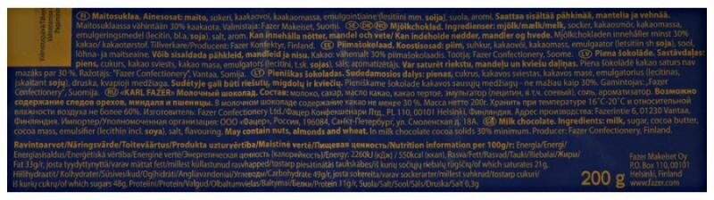 | Производитель | Fazer Confectionery Ltd, PL 4, Финляндия, 00101 Хельсинки |