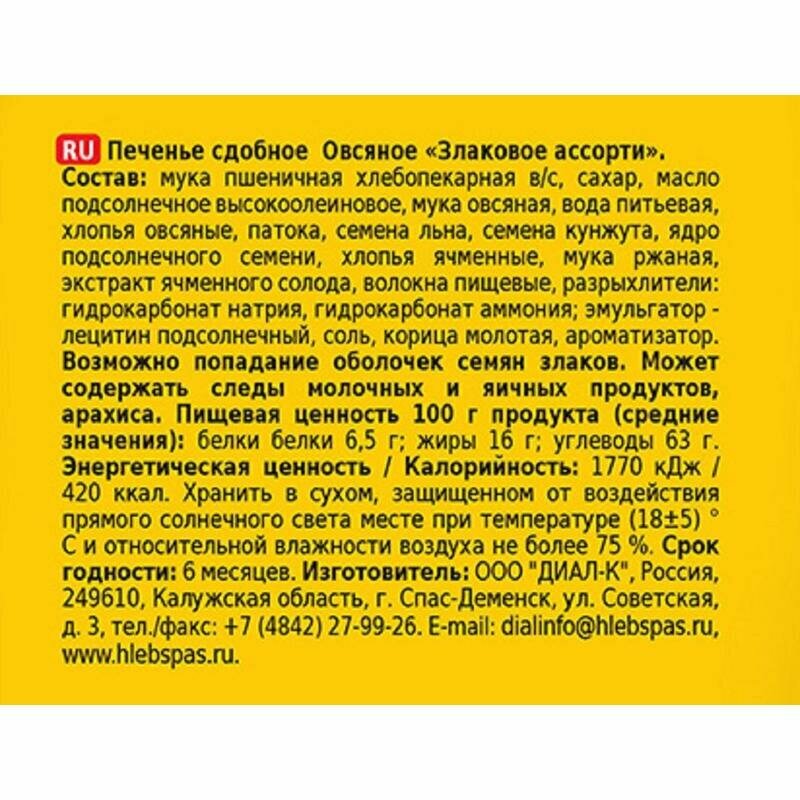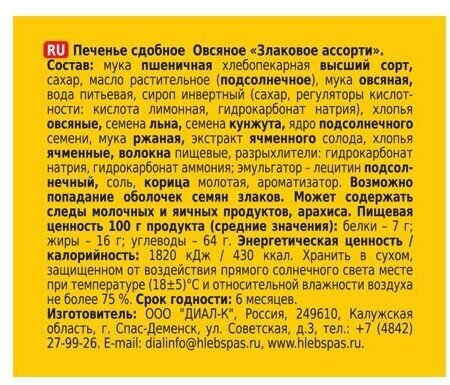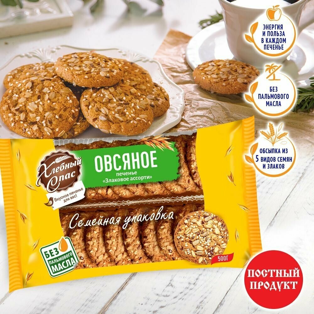 Печенье Хлебный Спас Овсяное Злаковое Ассорти 500г