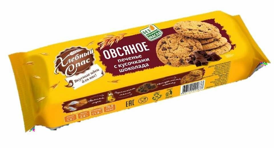 Печенье Хлебный Спас Овсяное с кусочками Шоколада 250г