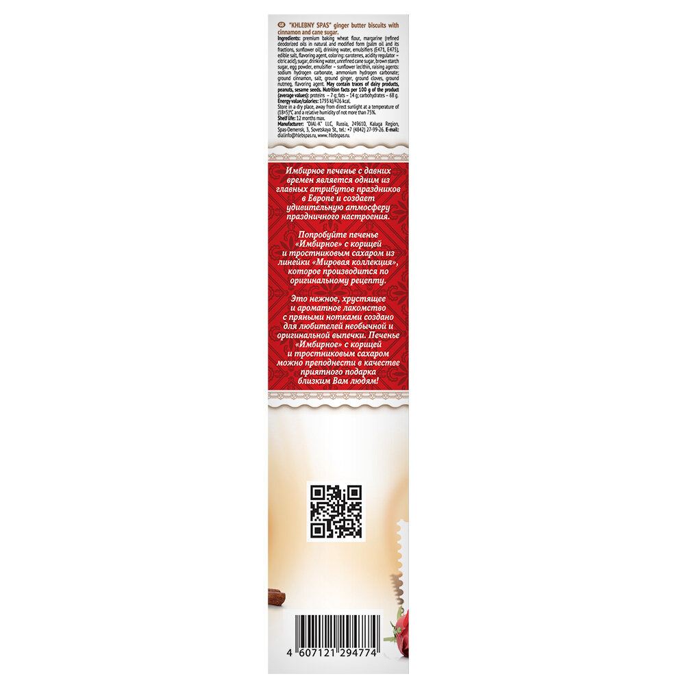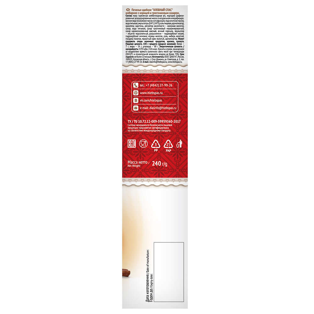 Печенье Хлебный Спас Имбирное с Корицей и Тростниковым сахаром 240г