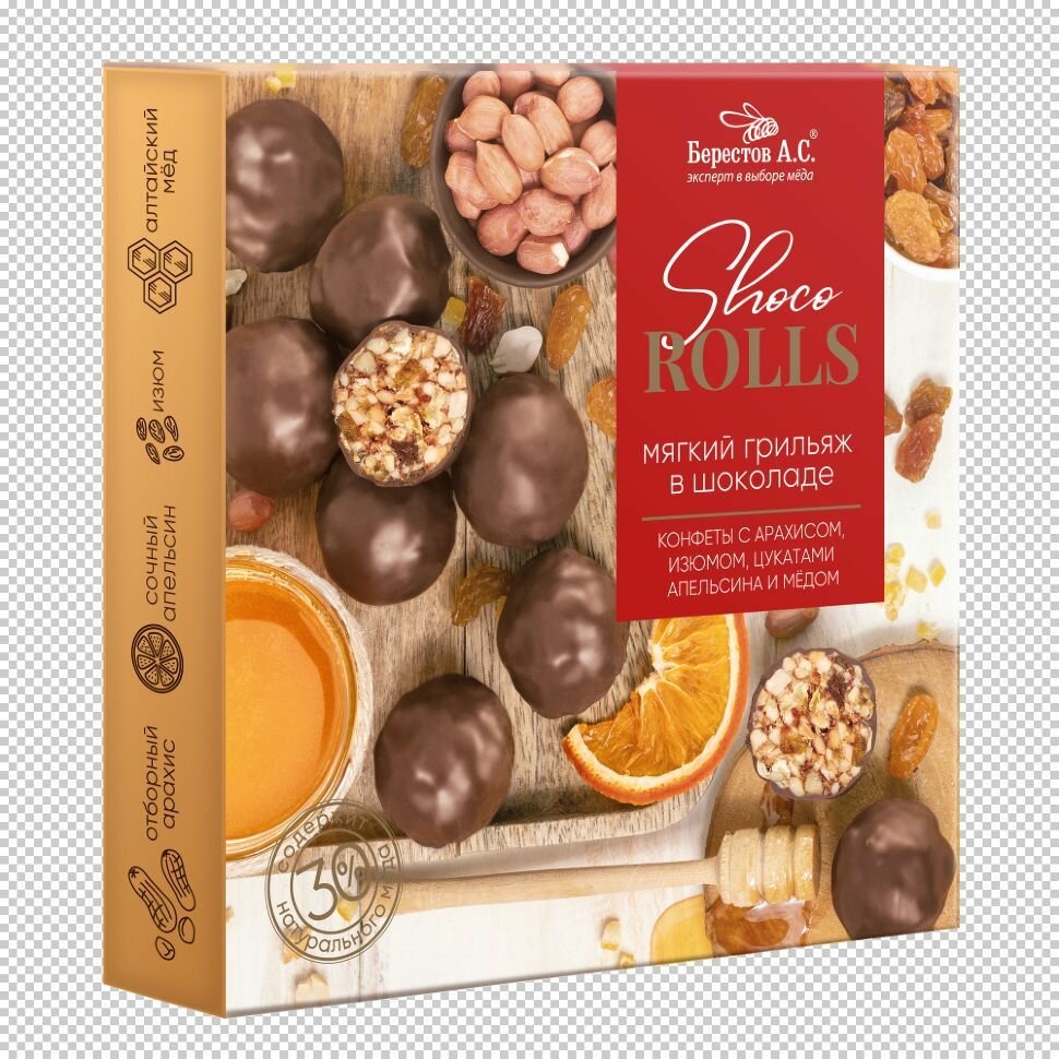 Состав: шоколадная глазурь сахар, какао тертое, эквивалент масла какао, какао-порошок, лецитин соевый натуральный эмульгатор, натуральный ароматизатор ванилин, арахис жареный дробленый, изюм, цукаты апельсина, мёд натуральный, экстракт розмарина. Продукт может содержать следы яичного белка, молочного белка, фундука, миндаля, грецкого и кедрового орехов.