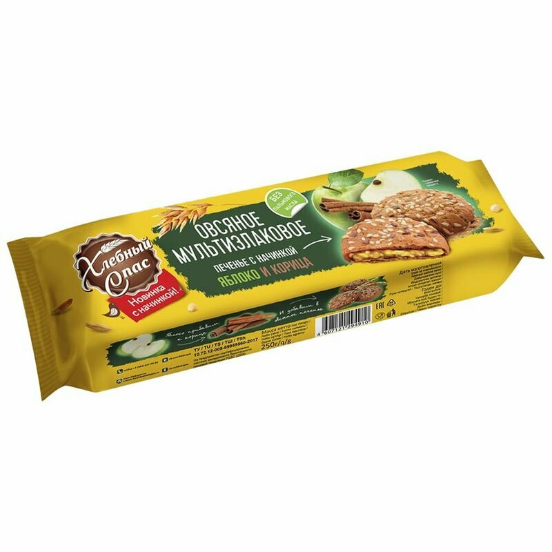 Печенье Хлебный Спас Мультизлаковое с начинкой Яблоко и Корица 250г