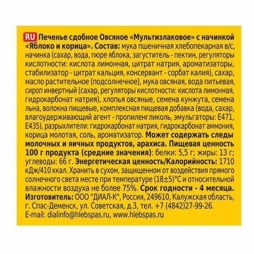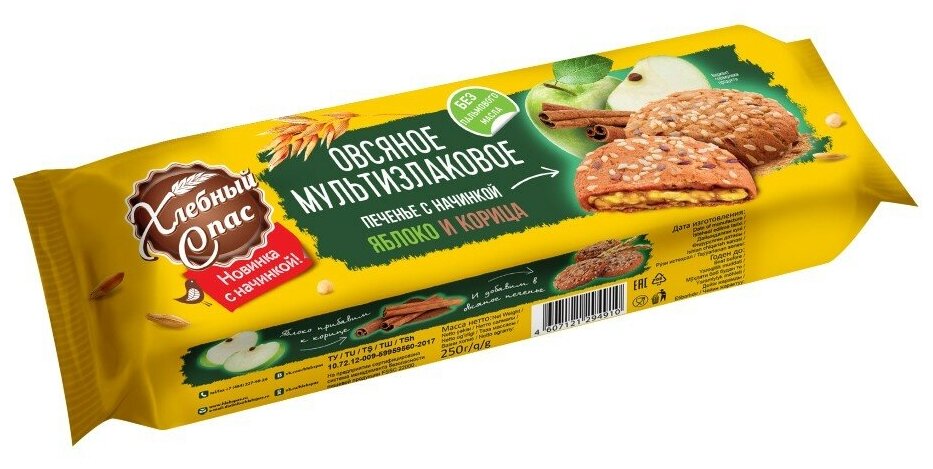 - Вкусная идея овсяного печенья Мультизлаковое с начинкой яблоко и корица от ХЛЕБНЫЙ СПАС