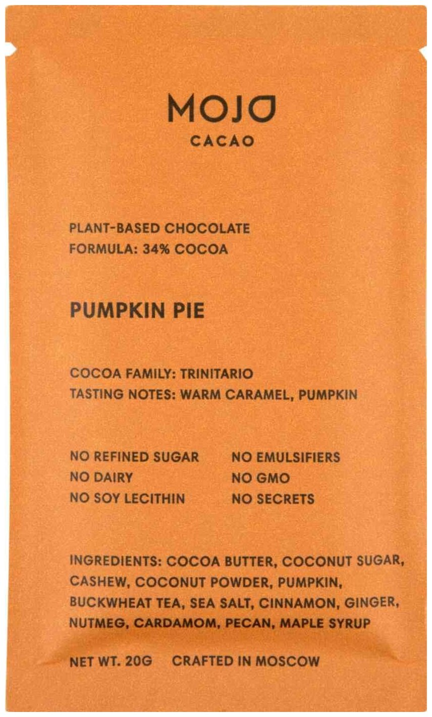 - Белый шоколад Mojo Cacao с пряной тыквой - Pumpkin pie, 20 г