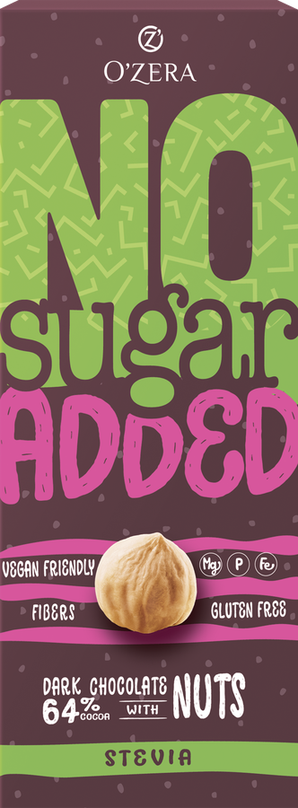 Горький шоколад без сахара и с пребиотиками – идеальное лакомство для сторонников здорового и сбалансированного питания. Шоколад с благородным немного терпким вкусом элитных какао-бобов с добавлением тертого кешью и дробленого фундука. O’Zera No sugar added Dark&Nuts – шоколад с уникальным составом: - без сахара, - с экстрактом стевии - полезным растительным подсластителем, имеющим нулевую калорийность. - с пребиотиками из корня цикория: инулином и олигофруктозой с низким гликемическим индексом, положительным воздействием на пищеварительную систему. В шоколаде с полезным составом в 5 раз меньше углеводов, чем в классическом горьком шоколаде с содержанием какао 55%. O’Zera No sugar added Dark&Nuts – польза и наслаждение в каждом шоколадном ломтике!