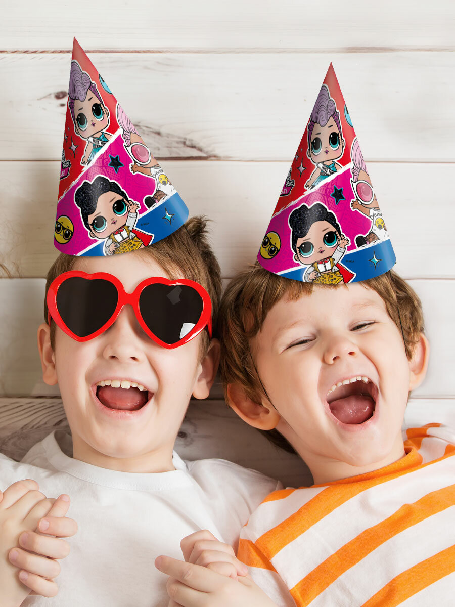 Набор бумажных колпачков с изображением кукол L. O. L. Surprise (ЛОЛ) вместе с другими товарами серии - это прекрасное решение для оформления детского тематического праздника! Куклы LOL (Лол) отлично разбираются в выборе модных и стильных нарядов на каждый день, и поэтому день рождения в стиле Лол (LOL) для девочек - это всегда яркий и незабываемый праздник! Бумажные колпачки изготовлены из качественных и безопасных материалов, упакованы в пакет с цветным картонным хедером. Прекрасно сочетаются с тарелочками, стаканчиками, трубочками и другой одноразовой посудой для детского праздника L. O. L. Surprise! Колпачки бумажные, диаметр основания 12 см, высота 17,5 см.